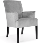 Moderen jedilni fotelj čistega, funkcionalnega dizajna. Preprosta oblika vedra in njegove prostorne dimenzije omogočajo občutek udobja, ki ga iščejo zahtevnejši uporabniki.