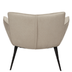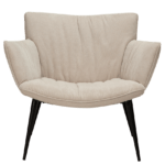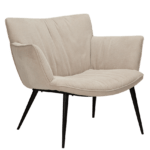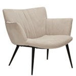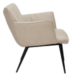 Ta udoben naslanjač je oblazinjen s tkanino barve puščavskega peska in stoji na črnih kovinskih nogah.