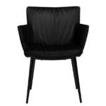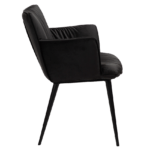 Ta udoben stol je oblazinjen s črnim žametom in stoji na črnih kovinskih nogah.