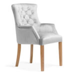 Oblazinjen fotelj z visokim naslonjalom. Naslonjalo ima plitke diamantne šive z gumbom na notranji strani. Z izbiro barve materiala ga boste lažje prilagodili preostalemu prostoru.