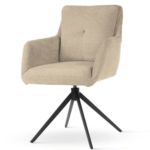 Stol June je edinstven primer združevanja stila, udobja in funkcionalnosti v enem elegantnem kosu pohištva. Pravilno izbrana barvna paleta naredi ta stol ne le privlačen, ampak tudi v harmoniji z okoljem. Noge stola June so izdelane iz trpežne kovine, pobarvane v intenzivno črno barvo, kar dodaja kontrast in značaj celotni kompoziciji. Zahvaljujoč 360-stopinjskemu vrtenju sedeža stol June zagotavlja udobje in svobodo gibanja.