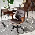 Pisarniški stol izdelan iz čudovitega in kakovostnega lesa v kombinaciji z eko usnjem prijetnim na dotik. Odlično bo pristajal sodobnim pisarnam, s svojim izjemnim dizajnom pa se bo lepo ujel tudi v delovnem kotičku Vaše dnevne sobe.