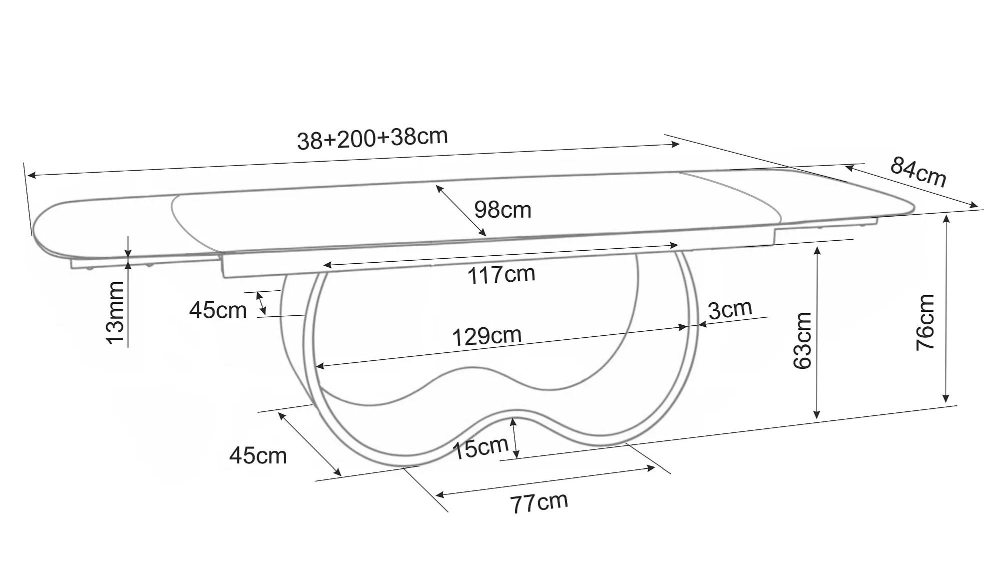Raztegljiva miza sodobnega dizajna je izdelana iz visokokakovostnih materialov, ki zagotavljajo vzdržljivost in eleganco. Plošča mize združuje kaljeno steklo in keramiko Mont Blanc, kar zagotavlja odpornost na praske, vročino in vsakodnevno uporabo. Stabilno kovinsko podnožje v bakrenem odtenku daje prefinjen videz in dodatno trdnost. Je idealna izbira za sodobne jedilnice, ki iščejo kombinacijo funkcionalnosti in razkošnega sloga.