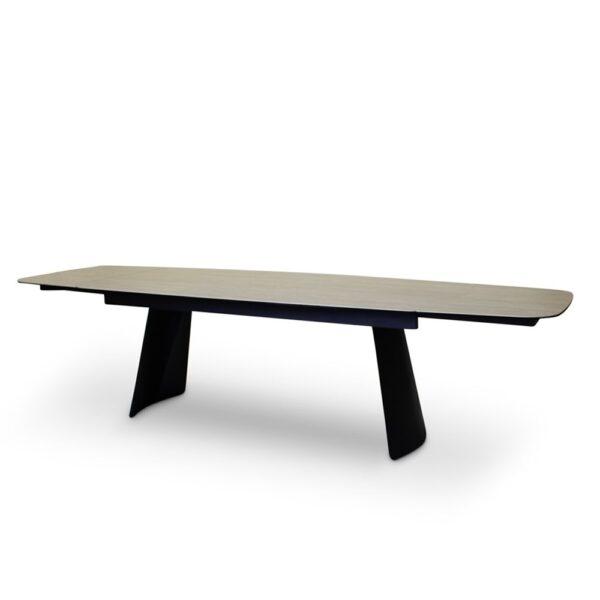 Raztegljiva jedilna miza Burano združuje elegantno obliko s funkcionalnostjo in vzdržljivostjo. Keramična mizna plošča ponuja razkošen videz, hkrati pa je odporna na praske, toploto in enostavna za čiščenje. Trdne kovinske noge zagotavljajo stabilno podlago in dajejo mizi industrijski videz. Zahvaljujoč raztegljivemu mehanizmu lahko mizo enostavno raztegnete in ustvarite dodaten prostor za goste ali posebne priložnosti.