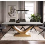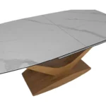 Najnovejša pridobitev v kolekciji keramičnih miz Davin! Miza dimenzij 180(240) x 95 s keramično ploščo od kaljeneg stekla bo poskrbela za zbirališče vaše jedilnice. Namizna deska je tokrat v mat beli barvi, dodatno trdnost in stabilnost pa mu bo dala čvrsta kovinska podloga.
