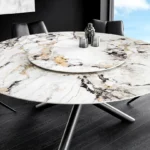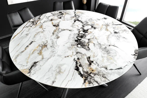 Naj bo vsak obrok nepozaben z jedilno mizo Eloise, kjer živahni marmorni učinki in gladko vrtljiva površina spremenijo sproščene večerje v nekaj posebnega.