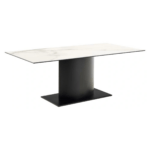 Jedilna miza Industry izžareva prefinjenost in slog, hkrati pa ponuja izjemno vzdržljivost. Keramična površina ne le izboljša vizualno privlačnost vaše jedilnice, temveč ponuja tudi praktično rešitev, ki zahteva malo vzdrževanja. Tanko kovinsko podnožje daje modelu oseben pridih in ga uvršča v osrednjo točko prostora.