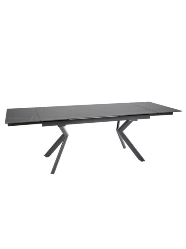 Najnovejša pridobitev v kolekciji keramičnih miz North! Miza dimenzij 160(240) x 90 z kreamično ploščo bo poskrbela za zbirališče vaše jedilnice. Namizna deska je tokrat v mat črni barvi, dodatno trdnost in stabilnost pa mu bo dala čvrsta kovinska podloga.