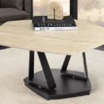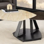 Mizica Francisco je idealna za manjšo dnevno sobo. Njen vrtljivi mehanizem omogoča nastavitev plošč do 130 cm. Osmerokotna oblika plošč doda drzen, sodoben pridih. Črno kovinsko podnožje zagotavlja trdnost in stabilnost, tudi ko se plošče vrtijo.