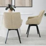 Moderno blago iz bukleja, kovinsko podnožje, udoben, vrtljiv sedež in praktični nasloni za roke so tisto, zaradi česar je ta stol odlična izbira za vsak prostor. Barve stola so odlična dopolnitev glamuroznih interierjev, saj poudarjajo luksuzni značaj prostora in mu dodajajo eleganco.