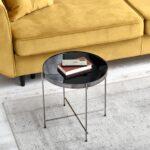 Edinstven in minimalističen dizajn steklene mizice s kovinsko konstrukcijo s svojo eleganco ustvarja sofisticiran slog v Vaši dnevni sobi.