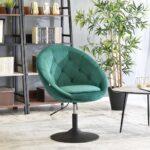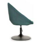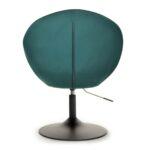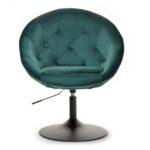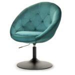 Elegantno oblikovan fotelj v kombinaciji jekla in žameta z nastavljivo višino in možnostjo rotacije.