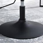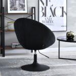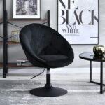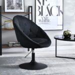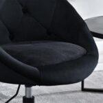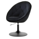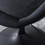 Elegantno oblikovan fotelj v kombinaciji jekla in žameta z nastavljivo višino in možnostjo rotacije.
