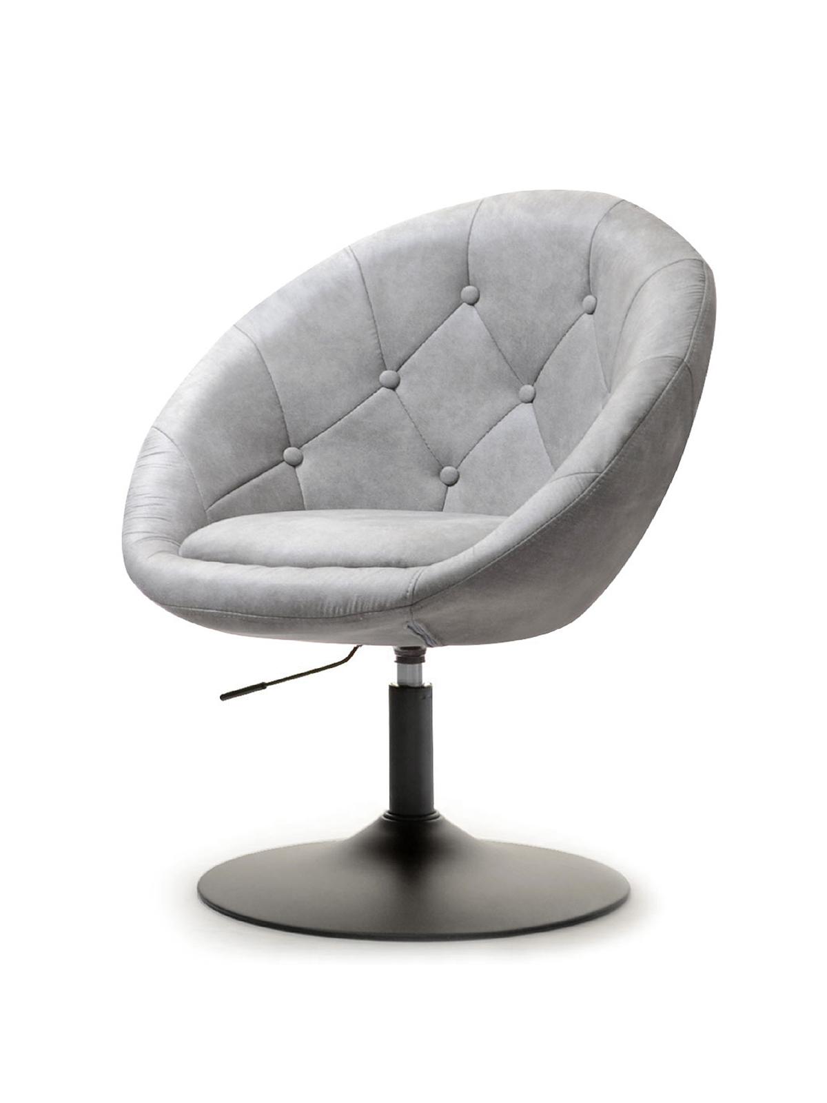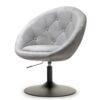Elegantno oblikovan fotelj v kombinaciji jekla in žameta z nastavljivo višino in možnostjo rotacije.