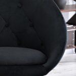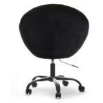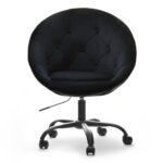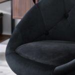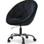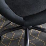 Elegantno oblikovan fotelj v kombinaciji jekla in žameta z nastavljivo višino in možnostjo rotacije.
