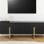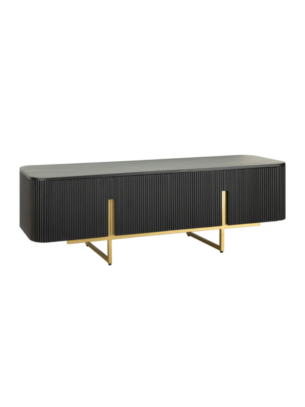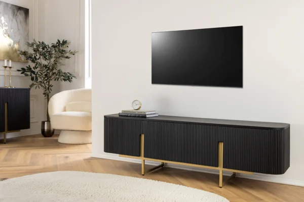 Združite retro čar in sodoben glamur s komodo Armas, elegantnim modelom, ki je hkrati praktičen in privlačen. Bogata obdelava mangovega lesa in drzni zlati detajli ustvarjajo popolno mešanico vintage stila in sodobnega pridiha za vsako sobo.