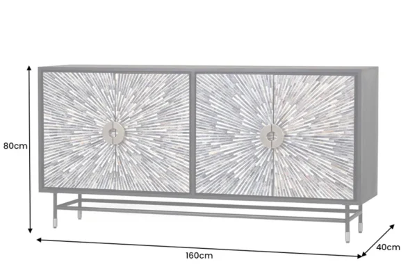 Komoda Edita v vaš prostor vnese drzen večbarvni mozaik, ki združuje nezamenljiv značaj z modernim pridihom. Izdelana je iz trpežnih materialov in kovinskih detajlov ter zagotavlja trajno kakovost in izjemen slog.