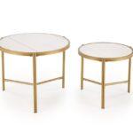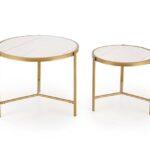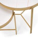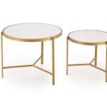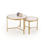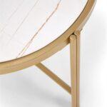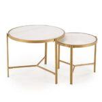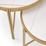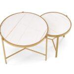 Kovinska mizica Nillu je elegantna garnitura iz zanimive kombinacije sintranega kamna v imitaciji marmorja s kovinskim podstavkom.