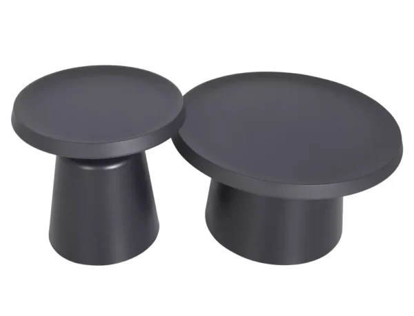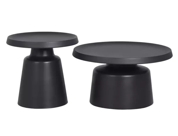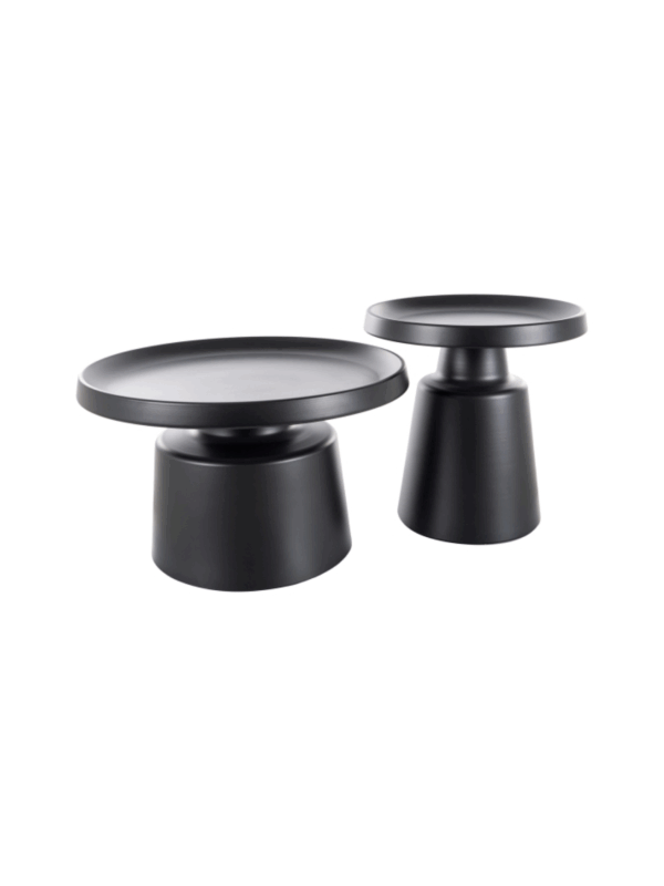 Komplet dveh kovinskih klubskih mizic premera 70 in 50 cm v črni mat izvedbi bo s svojo zanimivo obliko dvignil vzdušje vaše dnevne sobe.
