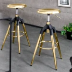Barski stol Ibsen ima industrijski značaj z največjo višino 81 cm. Izdelan je v celoti iz brušene kovine zlate barve in je idealen stol za dom.