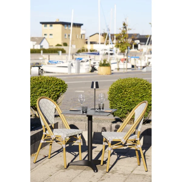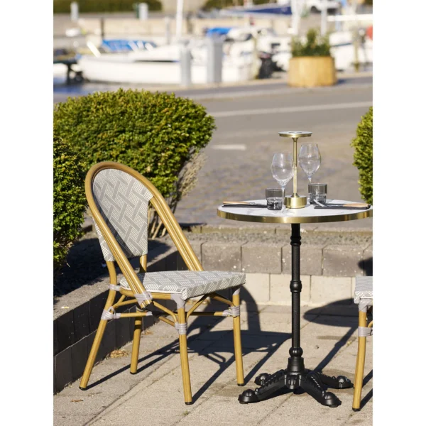 Gostinski stol Cafe je brezčasen, lahek stol, ki črpa navdih iz pariških kavarn in se lahko uporablja v zaprtih prostorih in na prostem. V celoti je izdelan iz aluminija z učinkom bambusa.
