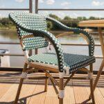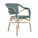 Jedilni stol Cafe je brezčasen, lahek stol z nasloni za roke, ki se zgleduje po slogu pariških kavarn in se lahko uporablja v zaprtih prostorih in na prostem. V celoti je izdelan iz aluminija z učinkom oreha. Sedež in naslonjalo sta izdelana iz sintetične vrbove preje, odporne na UV žarke. Zloži se lahko do 10 kosov, zaradi česar je praktičen izdelek za vrt ali restavracijo.