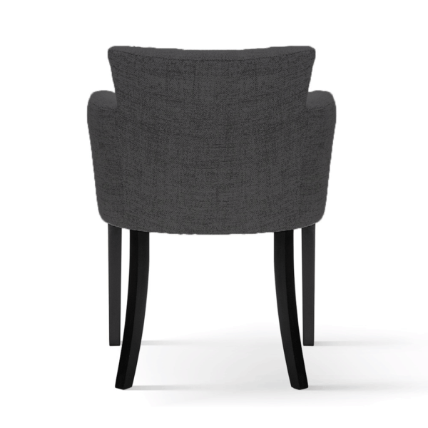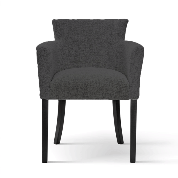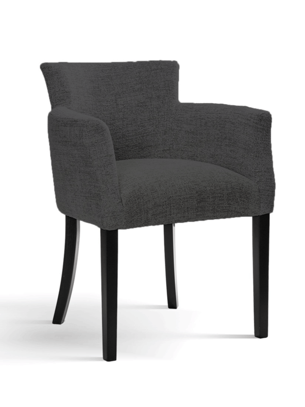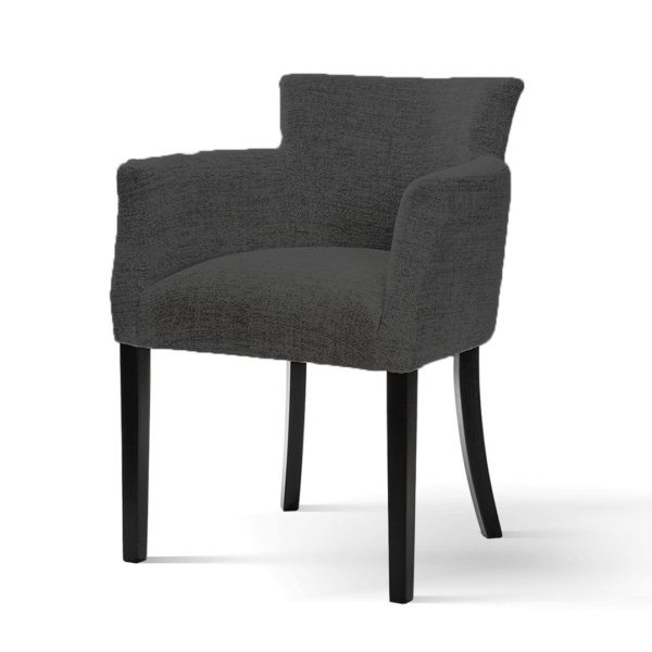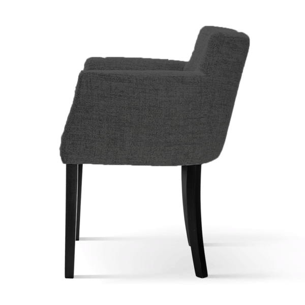 Masivno ogrodje tega stola, ki temelji na nogah iz bukovega lesa, je na voljo v kar 7 barvah. Za visoko udobje sedenja skrbijo mehke blazine, tako na sedežu kot na hrbtišču. Preprosti šivi na naslonjalu in visoki, oblikovani nasloni za roke dodajo čar.