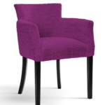 Masivno ogrodje tega stola, ki temelji na nogah iz bukovega lesa, je na voljo v kar 7 barvah. Za visoko udobje sedenja skrbijo mehke blazine, tako na sedežu kot na hrbtišču. Preprosti šivi na naslonjalu in visoki, oblikovani nasloni za roke dodajo čar.