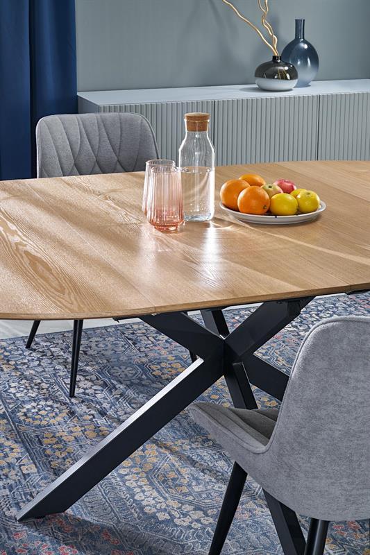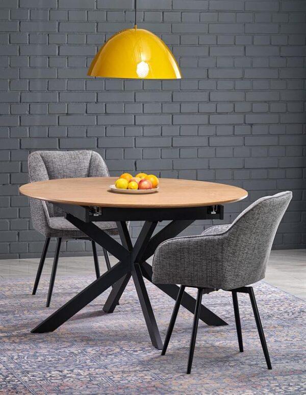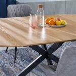 Prednosti jedilne mize Klari niso le v njenem edinstvenem dizajnu, temveč tudi v materialu, iz katerega je izdelana. MDF plošča mize, prekrita z naravnim furnirjem, doda prefinjenost in jo naredi primerno za različne notranje sloge, od lofta do modernega. Okrogla oblika mize, v kombinaciji z možnostjo raztegovanja v ovalno obliko, vam daje veliko prilagodljivost.
