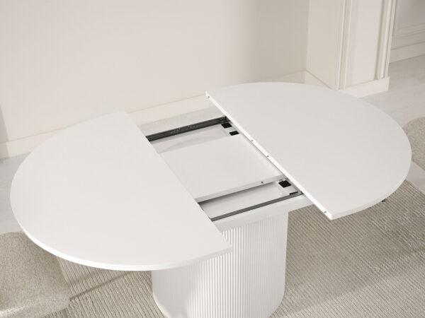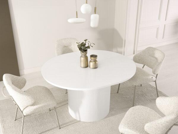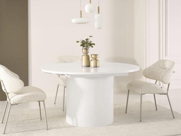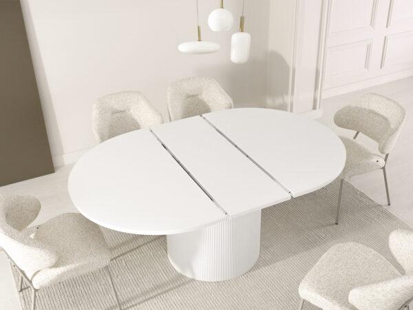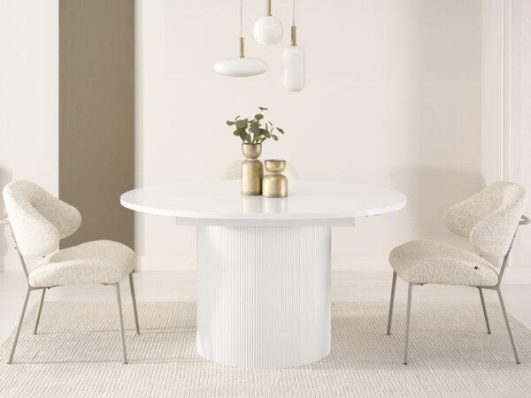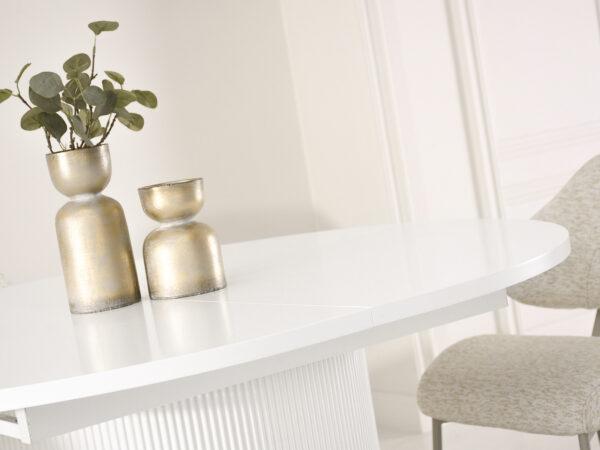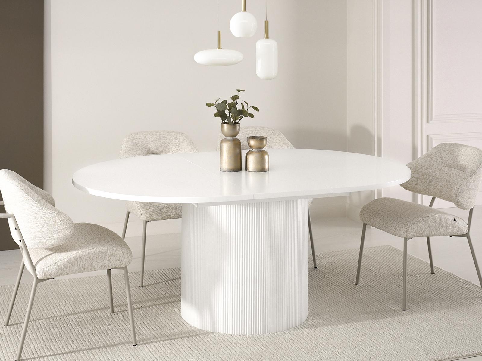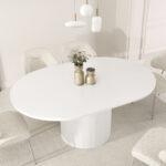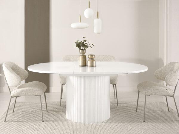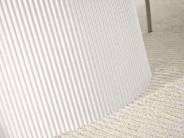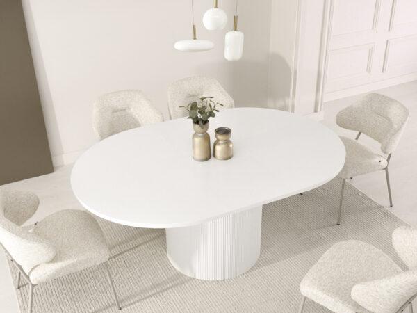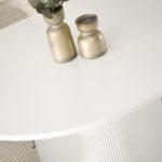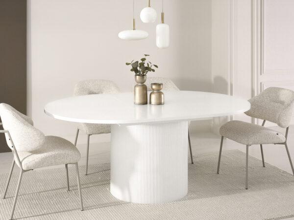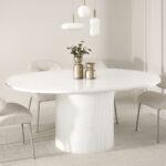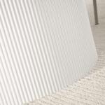 Ovalna jedilna miza Krista s strukturirano leseno ploščo in žlebljenim dnom je izraz moderne elegance in izjemnega stila. Njegova edinstvena oblika in vrh z izrazitimi vlakni pritegneta pozornost in ustvarita prefinjen poudarek v vsaki notranjosti. Popoln tako za vsakodnevne obroke kot tudi za bolj svečane priložnosti, v dom vnese eleganco in funkcionalnost.