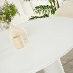Jedilna miza Morvern združuje brezčasno estetiko s praktičnostjo. Gladka mat površina je videti moderno in jo je enostavno čistiti. Nevtralna bela barva mizne plošče doda kanček lahkotnosti in vizualnega sijaja vsaki notranjosti, zaradi česar je miza popolna za različne aranžmaje.