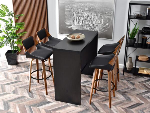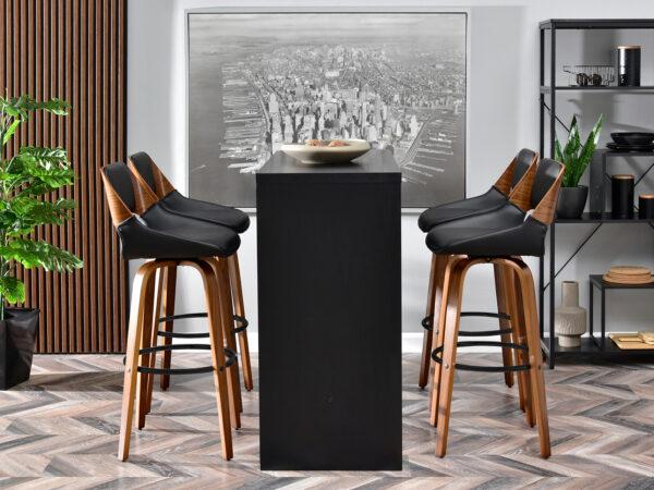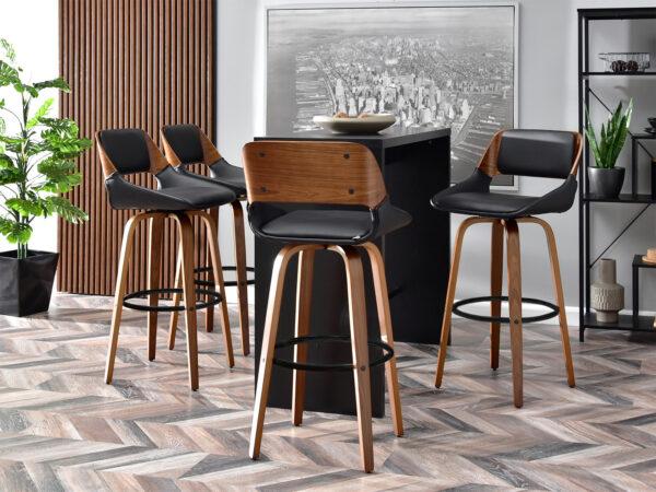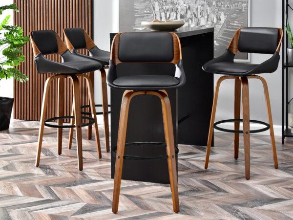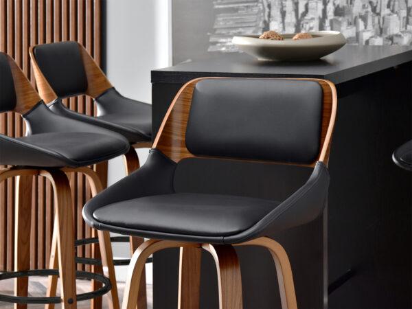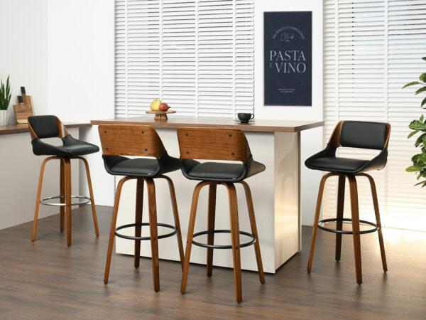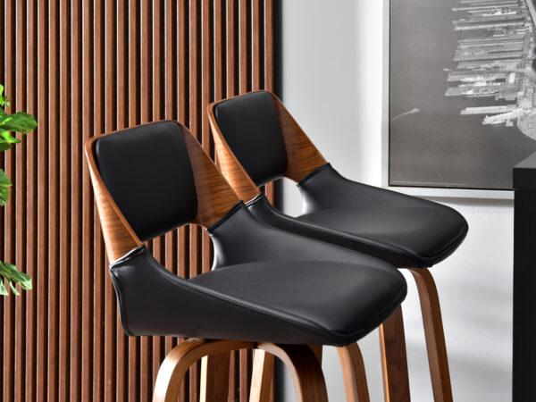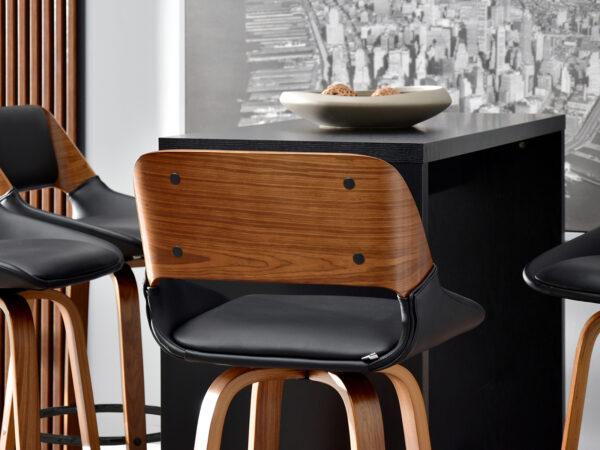 Barski stol Tadio je edinstvena kombinacija elegantnega lesa in modernega oblazinjenja iz eko usnja. Opremljen je z vrtljivim sedežem, ki ponuja udobje in funkcionalnost, idealen za kuhinje, jedilnice ali celo bare. Trdna konstrukcija in ergonomsko naslonjalo zagotavljata udobje tudi pri dolgotrajni uporabi.