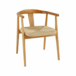 Jedilni stol Azat, izdelan v celoti iz naravnega bukovega lesa, se ponaša z brezčasnim dizajnom. Nasloni za roke so zasnovani tako, da podaljšajo naslonjalo in zagotavljajo udobje, sedež iz tkane papirnate vrvi pa doda edinstven estetski pridih.
