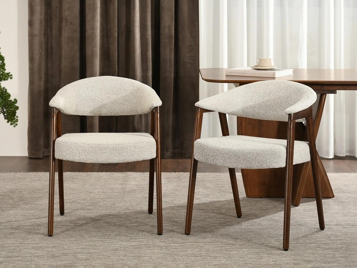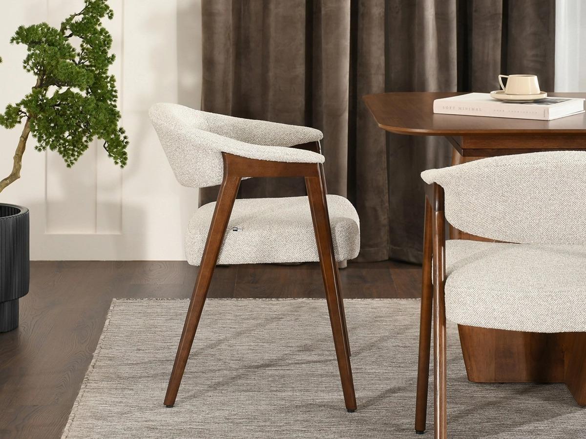 Jedilni stol Idona je idealen za tiste, ki cenijo ergonomijo in visokokakovostno izdelavo. Bukle tkanina in toplo orehov podnožje ustvarjata harmonično celoto, ki bo poživila vsako notranjost. Investirajte v dolgotrajno udobje in ustvarite prijetno vzdušje v svoji jedilnici, dnevni sobi ali pisarni.