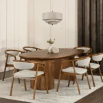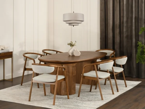 Stol Odelia, izdelan iz masivnega lesa, navdušuje s svojo vzdržljivostjo in odpornostjo na poškodbe. Upognjen les mu daje lahkotnost in prefinjenost, hkrati pa zagotavlja stabilno strukturo. Stole iz naravnega lesa zaznamujejo individualni vzorci letnic in naravne barvne različice. Te lastnosti materiala se med proizvodnjo ohranijo, da poudarijo njegov pravi značaj in dajo vsakemu modelu edinstven, neponovljiv videz.