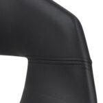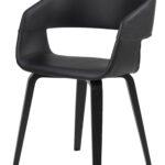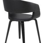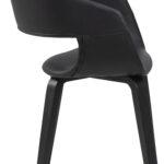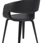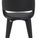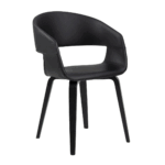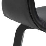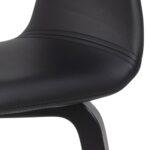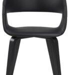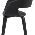 Jedilni stol Lucine bo s svojo edinstveno obliko odlično izgledal v modernih, skandinavskih ali industrijskih interierjih. Štiri lesene noge, ki se križajo pod sedežem, zagotavljajo stabilnost in varnost ter so izdelane iz upognjenega hrastovega furnirja, pobarvanega v črno. Sedež je izdelan iz visokokakovostnega črnega eko usnja, ki je hkrati trpežno in estetsko prijetno.