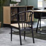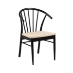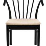 Jedilni stol Suvi je model, ki se odlično poda k notranjosti v boemskem ali skandinavskem slogu. Osnova stola je sestavljena iz štirih nog, katerih sprednji del se zožuje proti dnu. Zadnje, nekoliko širše, gladko prehajajo v naslonjalo. To zagotavlja ustrezno oporo za hrbet in je sestavljeno iz sedmih navpičnih elementov, razporejenih v obliki pahljače.