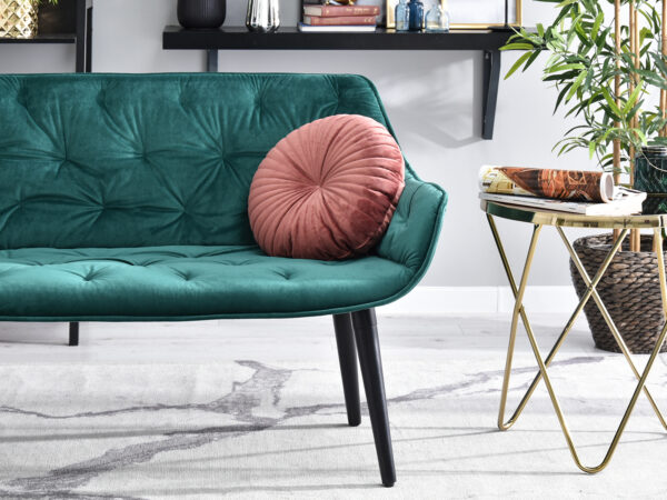 Izjemno udoben dvosed sodobnih linij izdelan iz čudovitega žameta. Njegovo eleganco poudarjajo tanke kovinske noge.