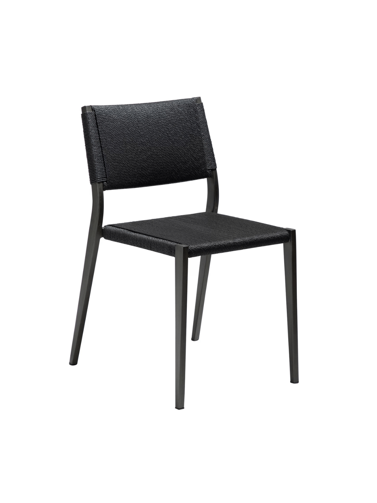 Temno siv kovinski okvir je okrašen z ročno tkanimi 3-slojnimi črnimi vlakni, kar daje stolu preprost, linearen videz, ki ga dvigne na višjo raven.