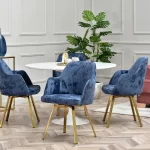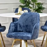 Preprost, a drugačen – vrtljivi stol Luis vas bo navdušil s svojim dizajnom. Za oblazinjenje sedežev je bila uporabljena tkanina velur iz kolekcije EUREKA. Za ta material je značilna nizka absorpcija tekočin, odpornost na plamen in vlečenje niti (odporen na hišne ljubljenčke). Jeklena osnova bo v kombinaciji z omenjeno tkanino dopolnila vsak interier.