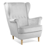 Oblazinjen krilni stol moderne oblike z ergonomsko nagnjenim naslonjalom. Naslonjalo ima nežne trakove, zaključene z okrasnimi gumbi. Z izbiro barve materiala ga boste lažje prilagodili preostalemu prostoru.