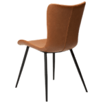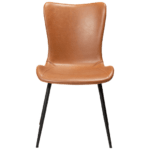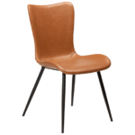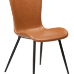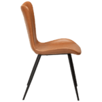 Sedišče tega stola je oblečeno v eko usnje v svetlo rjavi vintage barvi in je zasnovano za maksimalno udobje. Kovinske črne noge stolu dodajo lahkotnost in eleganco.