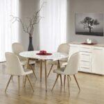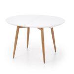 Jedilniška miza sodobnih linij v okrogli izvedbi in z možnostjo povečanja površine plošče, bo prispevala minimalističnemu videzu Vašega doma.