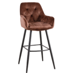Barski stol Melania je preprostega dizajna, prevlečen z rjavo žametno prevleko in stoji na črnem kovinskem podnožju, kar daje temu kosu pohištva dodaten pridih elegance.