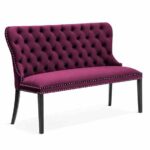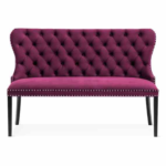 Lepa in udobna klop z lesenimi nogami in različnimi barvami blaga v ponudbi.