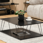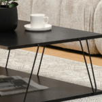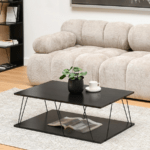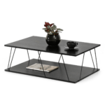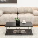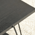 Mizica Holland je izdelana v modernem, minimalističnem stilu, ki se osredotoča na preprostost oblike in funkcionalnost. Eleganten zgornji del in tanek kovinski okvir ustvarjata vizualno lahkotno kompozicijo. Kontrast med strukturo zgornje plošče in kovinskimi elementi daje mizi industrijski značaj.