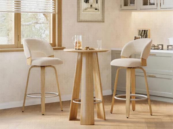 Odkrijte edinstveno barsko mizo Kel – popolno mešanico funkcionalnosti in stila, ki bo preobrazila vsako notranjost. Ta skandinavska okrogla barska miza je kot nalašč za tiste, ki cenijo udobje in naravne materiale. Ustvarite prijetno vzdušje v svoji kuhinji, jedilnici ali pisarniškem prostoru z izbiro modela, ki združuje sodoben dizajn z dolgotrajno vzdržljivostjo.