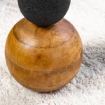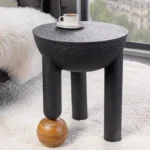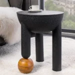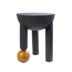Vnesite izvirnost v svojo notranjost s klubsko mizico Shoshana! Njegova kiparska zasnova, navdihnjena s sedemdesetimi leti prejšnjega stoletja, zapeljuje s svojimi obrisi in harmoničnim kontrastom med svetlo zlato in prefinjenimi črnimi poudarki. Ta miza je izdelana iz jekla s črnim prašnim premazom s strukturiranim učinkom in očara s svojim dizajnom ter brezčasno vizualno briljantnostjo, spodnja podporna krogla pa je izdelana iz mangovega lesa. Ta vsestranska in robustna klubska mizica je zasnovana tako, da združuje estetiko in vzdržljivost. Njegova zlata površina, subtilno patinirana z nepravilnostmi, priča o nežni izdelavi, zaradi česar je vsak kos edinstven.