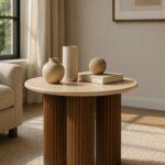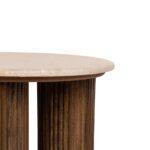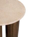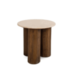 Klubska mizica Sinaloa je idealna za ljubitelje naravnih materialov in prefinjenega dizajna. Marmorna plošča z žilami na bež ozadju v notranjost vnaša lahkotnost in eleganco, medtem ko rjavo podnožje iz mangovega lesa daje celotnemu prostoru prepoznaven in kiparski značaj.