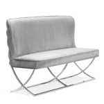 Lepa in udobna klop s kovinskimi nogami in različnimi barvami tkanin v ponudbi.